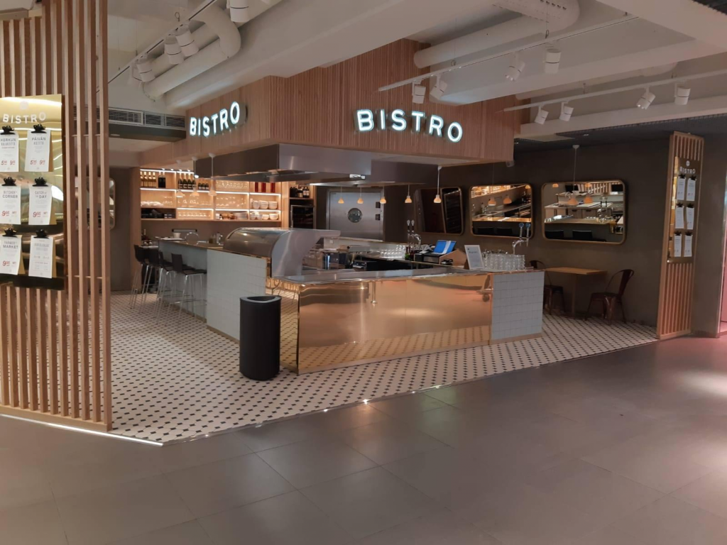 Ei ihan mikä tahansa bistro vaan grocerant, eli ruokakaupan sisällä sijaitseva ravintolan ja valmistuskeittiön yhdistelmä, jossa annoksissa käytetään myymälästä valikoituja raaka-aineita. Kalustesektori vastasi urakan rakennustöistä.