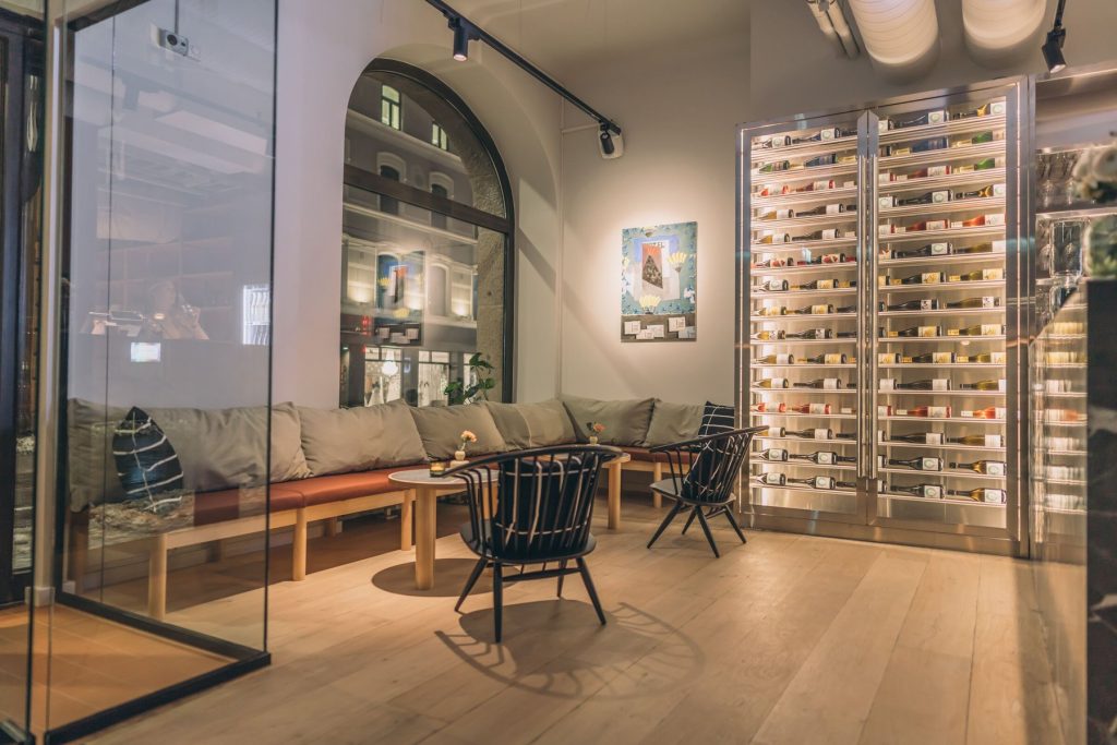 Sushi ja skandinaavinen estetiikka ovat kotoisin eri puolilta maailmaa, mutta silti ne ovat kuin luotuja toisilleen. Liiton sinetöi kolmas elementti: itsenäisten tuottajien valmistamat orgaaniset viinit. Näistä sybtyy Sushibar + Wine -konsepti. Kalustesektori on vastannut Sushibar + Wine ravintoloiden rakentamisesta Helsinkiin ja Osloon.